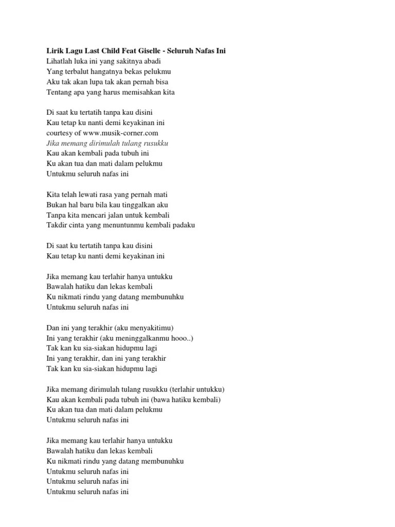 Lirik Lagu Kita Telah Lewati Rasa Yang Pernah Mati / Lirik Dan Chord Gitar Lagu Seluruh Nafas Ini Last Child Feat Gisel Berita Sampang : Entah kenapa pas dengar lagu ini, mimin keingat sasusaku dan penggalan lirik lagu .. Bukan hal baru bila kau tinggalkan . Ku akan tua dan mati dalam pelukmu. Berikut adalah lirik lagu dan chord gitar seluruh nafas ini dipopulerkan oleh last child ft. Kita telah lewati rasa yang pernah mati. Kita telah lewati rasa yang pernah mati